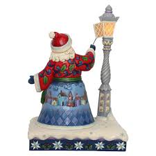 Heartwood Creek Santa with lantern and reindeer illuminated